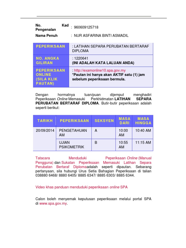 Sekiranya anda berminat dan berkelayakan, pemohon boleh membuat pendaftaran pekerjaan melalui borang spa8i di portal rasmi suruhanjaya perkhidmatan awam. Pemohon pekerjaan / latihan separa perubatan. Pendaftaran pekerjaan dalam perkhidmatan awam (spa8i). Menerusi portal rasmi spa, peperiksaan separa perubatan 2018 akan diadakan pada 29 mac 2018 secara online di laman sesawang spa8i. Info lengkap kerjaya separa perubatan.