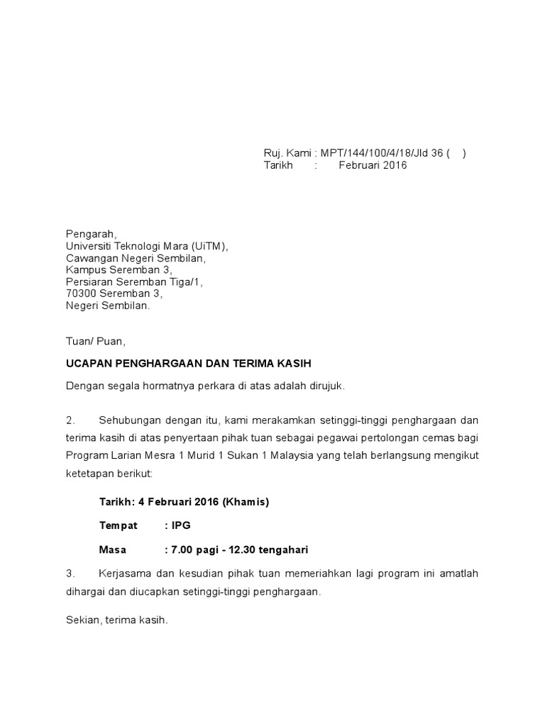 Contoh Surat Penghargaan Dan Terima Kasih Atas Kerjasama - Https Www Jkm Gov My Jkm Uploads Files Bahagian 20kawalan 20standard Arahan 20pentadbiran 20bil 203 20tahun 202016 Pdf - Demikan sekilas tentang penawaran kerjasama kami, atas segala perhatiannya kami ucapkan banyak terima kasih.. Badung, 10 desember 2016 hormat saya, siti wasiatin. Dimana bagian penutup tersebut memang sangat wajib ada baik surat resmi maupun surat non resmi. Penutup surat, nama dan tanda tangan. Nah pada bagian akhir ada bagian penutup surat yang berisi ucapan terima kasih atas perhatian dari pihak yang dituju. Jan 30, 2016 · dukungan dan partisipasi bapak/ibu sangatlah kami harapkan untuk menjalin kerjasama dan menjadi rekan kerja di perusahaan yang bapak/ibu pimpin.